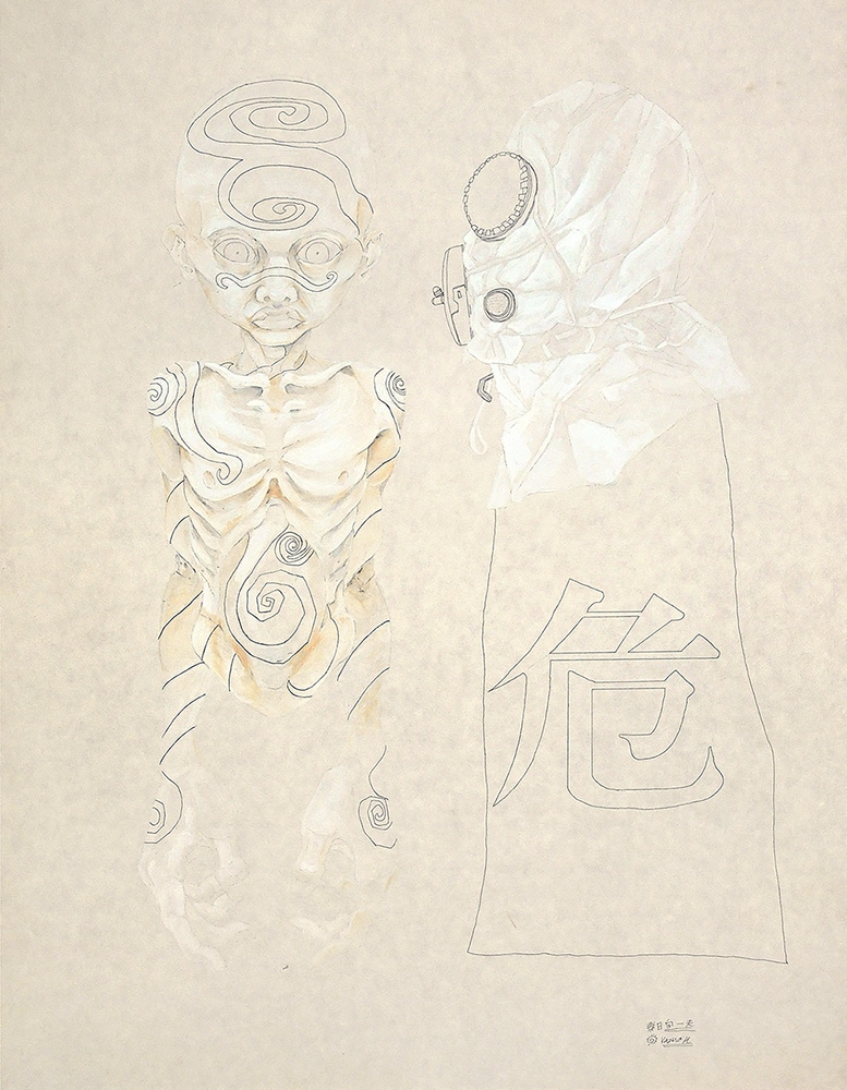 606x500mm雲肌麻紙 鉛筆 泥絵具