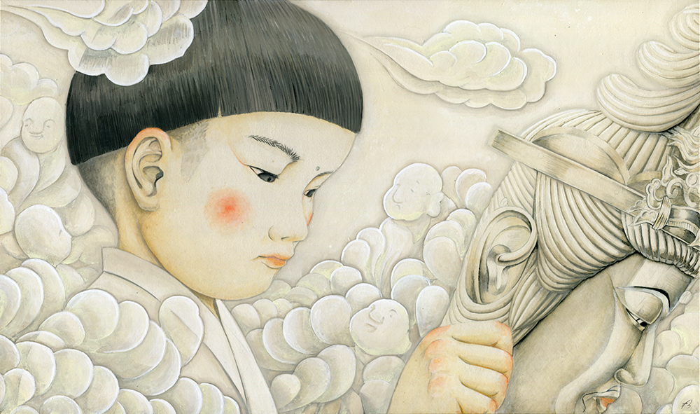 910×606mm雲肌麻紙 岩絵具 泥絵具