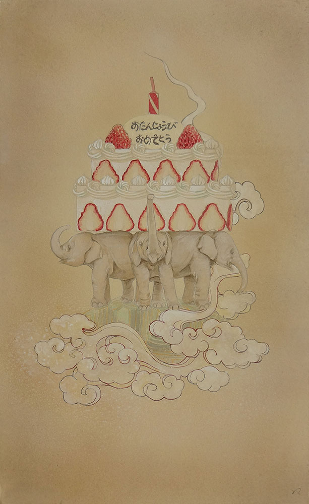 200×200mm雲肌麻紙 鉛筆 泥絵具